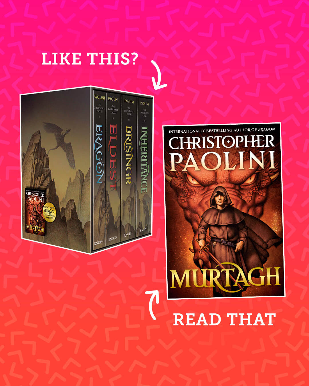 If you enjoyed reading Eragon, Eldest, Brisingr, and Inheritance, you won’t want to miss Christopher Paolini’s latest book, Murtagh! Return to the World of Eragon in this epic fantasy set a year after the events of the Inheritance Cycle. Join Dragon Rider Murtagh and his dragon as they confront a perilous new enemy!
